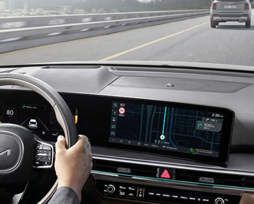 이번 페이스리프트에서 가장 주목할 만한 변화는 내부 고급화입니다. 12.3인치의 클러스터와 내비게이션 모니터를 일체형으로 결합한 파노라믹 커브드 디스플레이가 돋보이며, 송풍구 라인과 공조패널 형태가 현대적으로 정리되어 전작보다 더 세련된 느낌을 제공합니다.